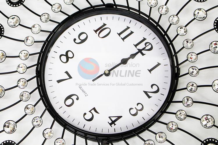 China Factory Round Crystal Iron Wall Clock for Home Decoration