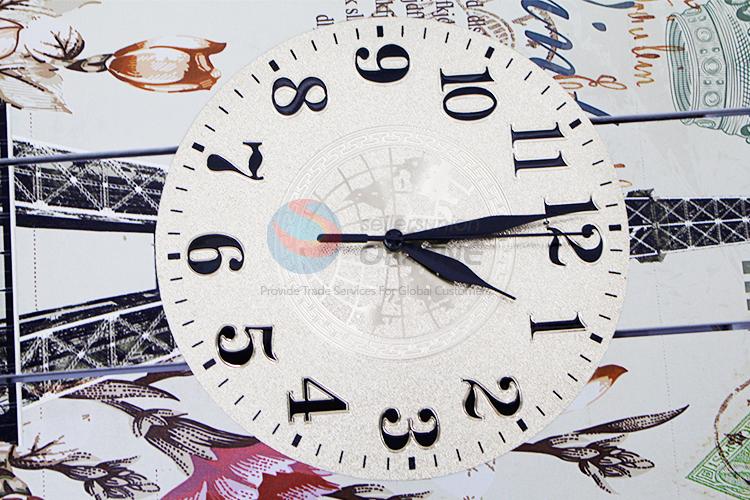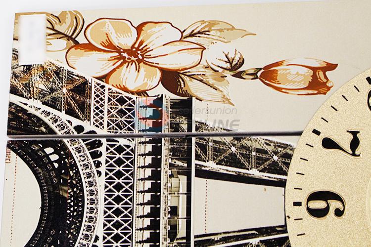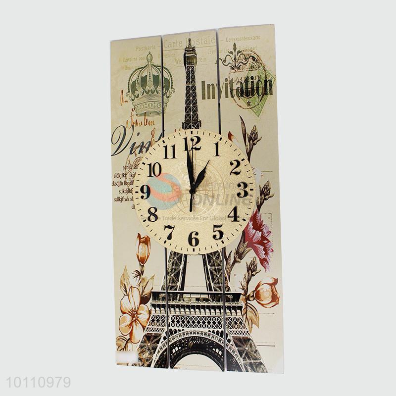 Popular Decorative Vintage Rectangle Wood Wall Clock with Eiffel Tower Pattern