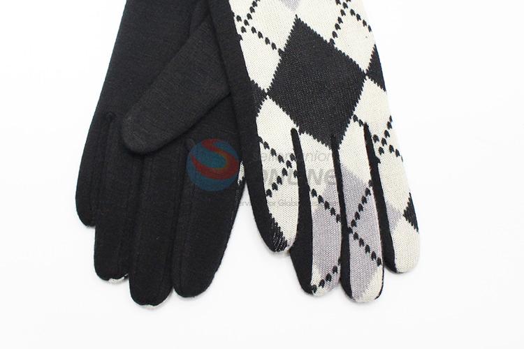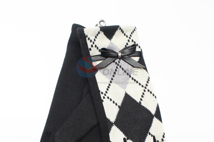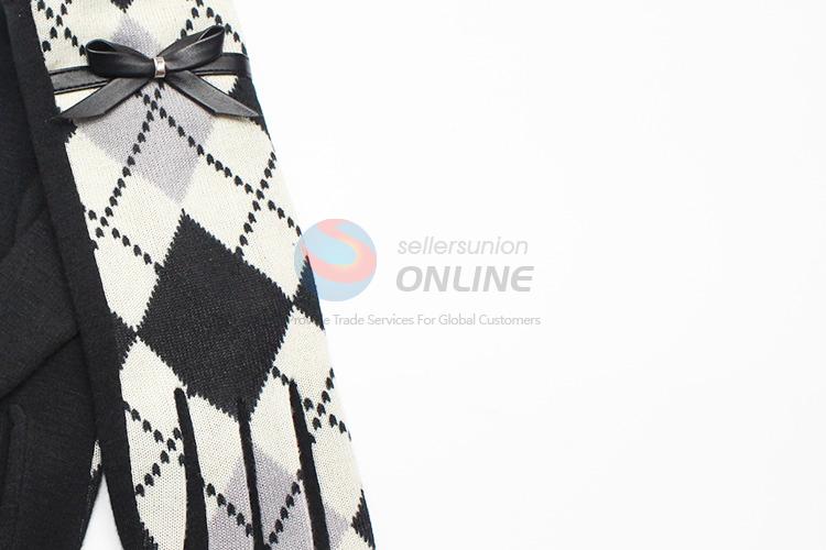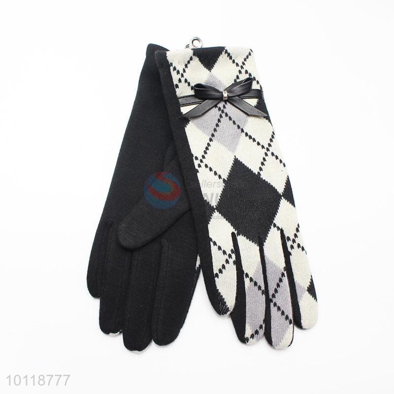 White Plaid Pattern Wool Gloves with Bowknot