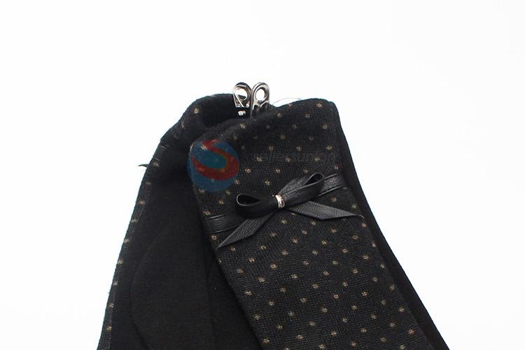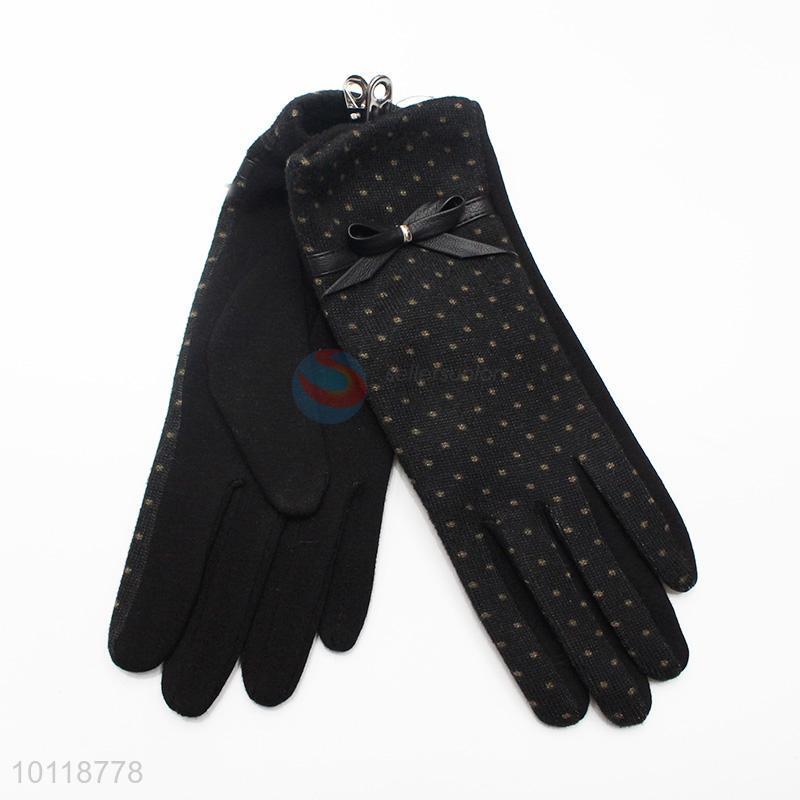 Black Dots Mirco Velvet Gloves with Simple Bowknot