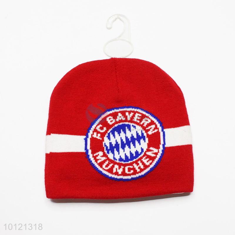 Red FC Bayern Munchen Pattern Beanie Hat,Knitted Hat