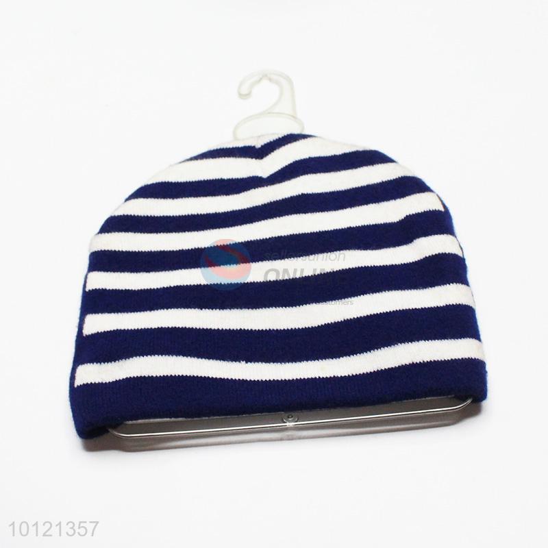 Blue and White Stripe Winter Hats Knitted Beanie Hats