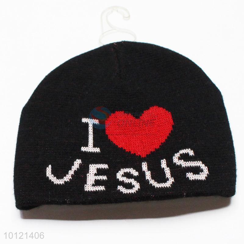 Fashion Black I Love Jesusi Pattern Beanie Hats Knitted Hats