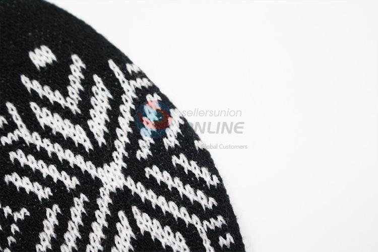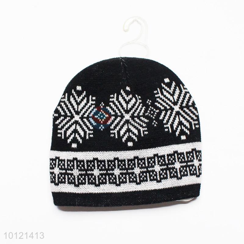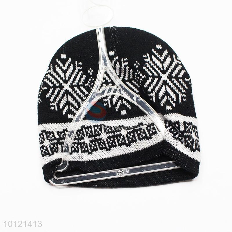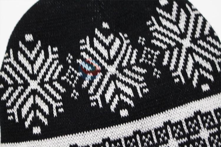 Black Snowflake Pattern Winter Crochet Knitted Hats, Beanie Hats