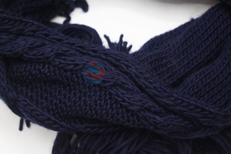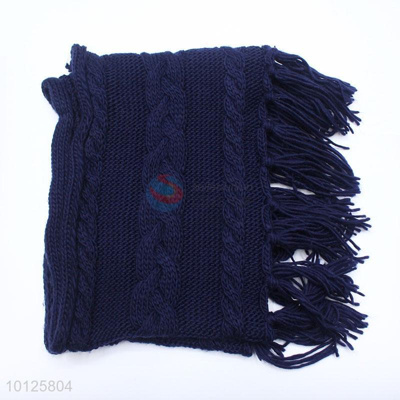 High Quality Navy Blue Tessel Scarf Women Winter Scarf