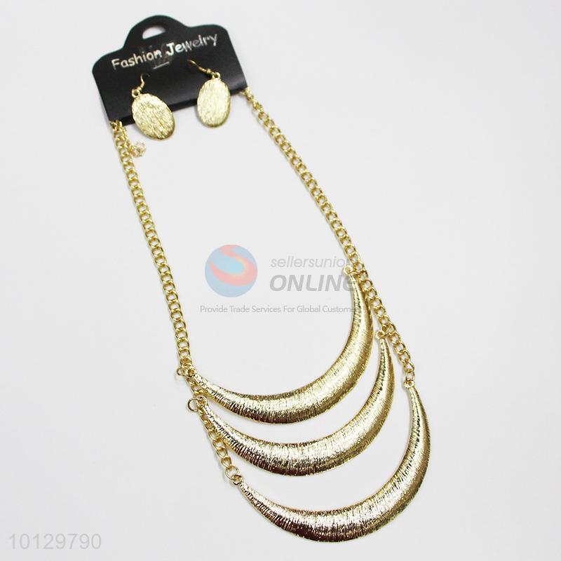Curving 3-layer diamond dust alloy necklace&earrings set