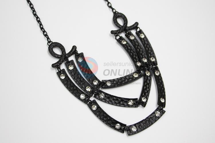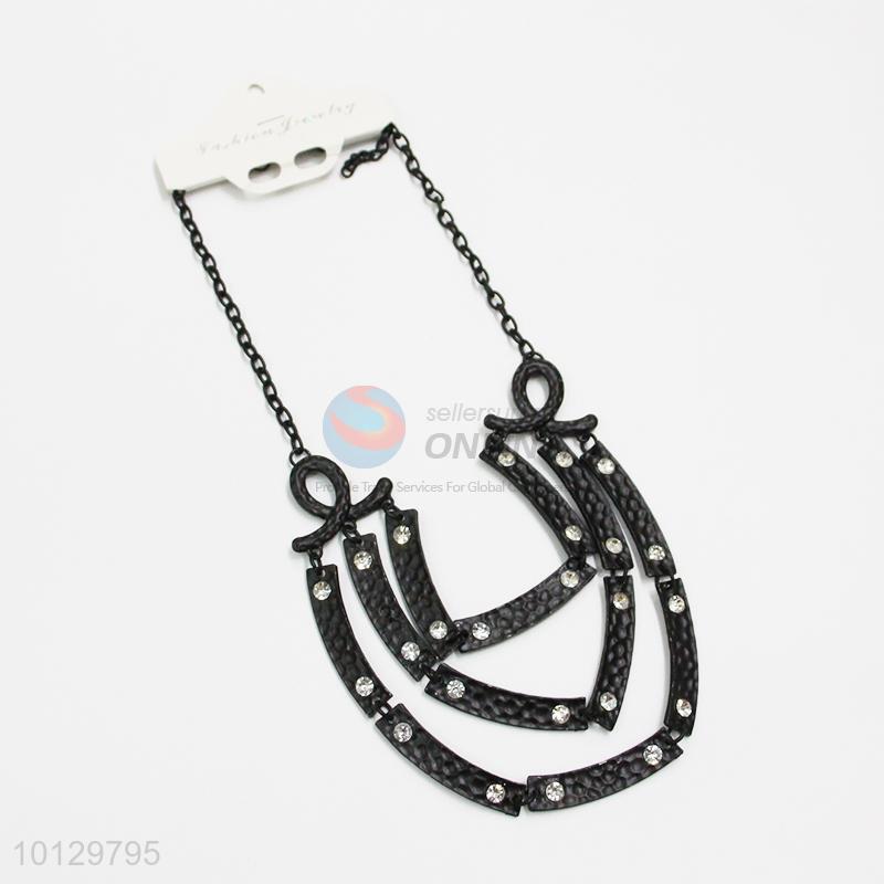 Black plating clear stoned statement necklace
