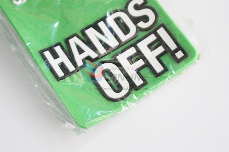 "Hands off" printed luggage tag