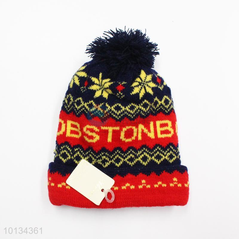 Snowflake printed cotton knitting kids winter caps