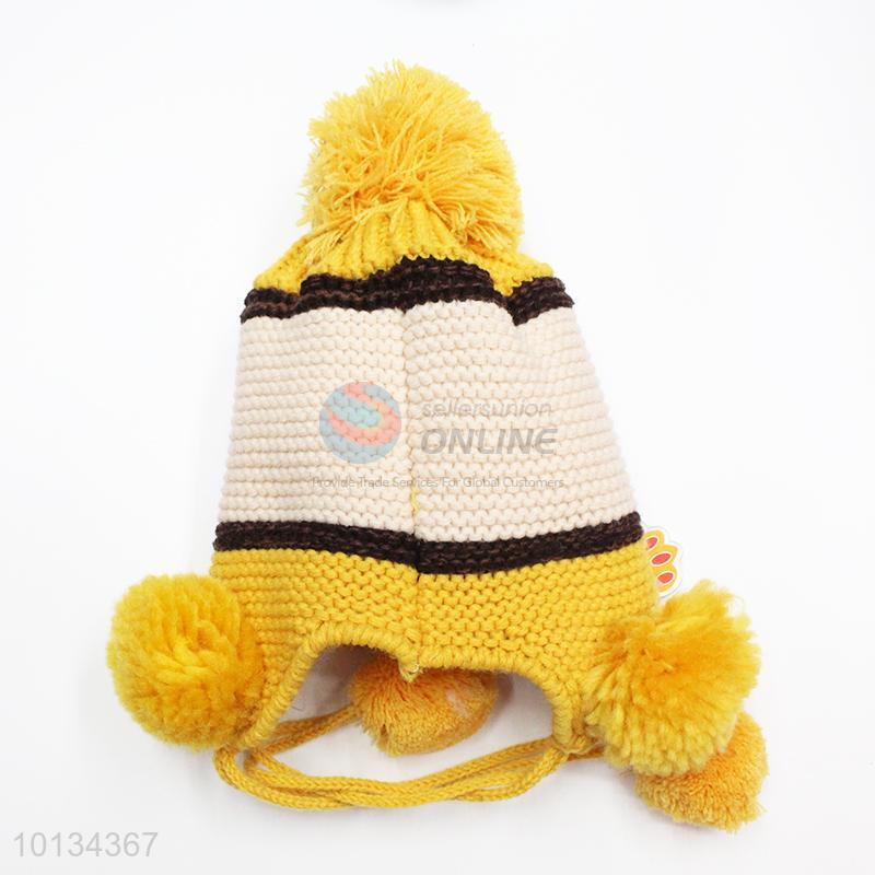 Kids favorite yellow cotton knitting warm winter caps