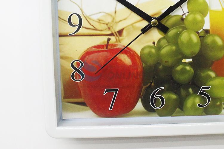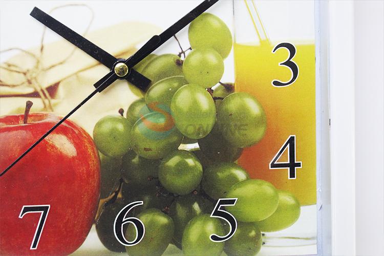 Good Quality White Plastic Wall Clock with Fruit Background