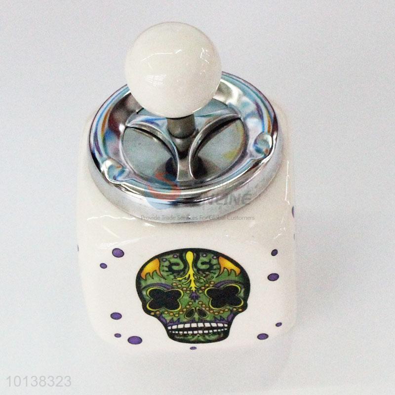 High Quality Skull Printed Ceramic Ashtray with Cover