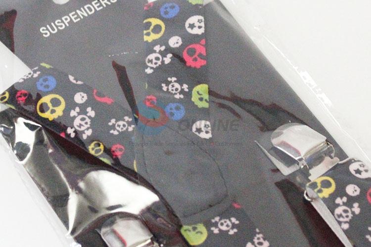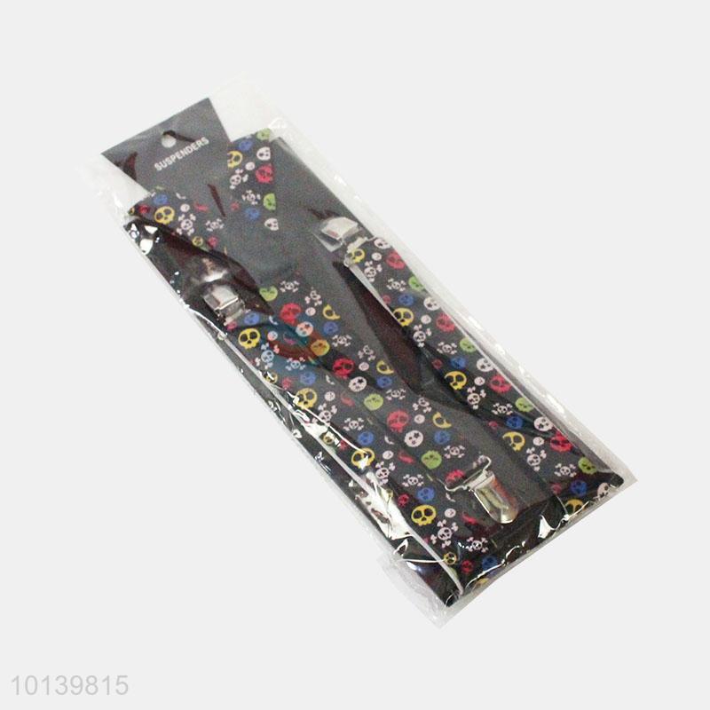 Promotional Adults Metal Clips Suspenders with Colorful Skulls Pattern