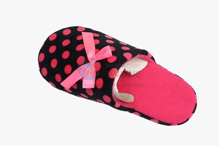 High sales black&red cotton slipper with cute pink bowknot