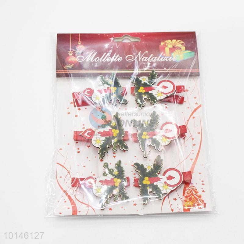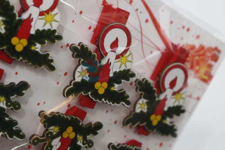 6pcs/set Fashion Christmas Candles Shaped Decoration Wooden Clips