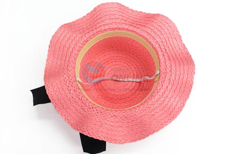 Wholesale Kids Straw Beach Cap With Black Bowknot