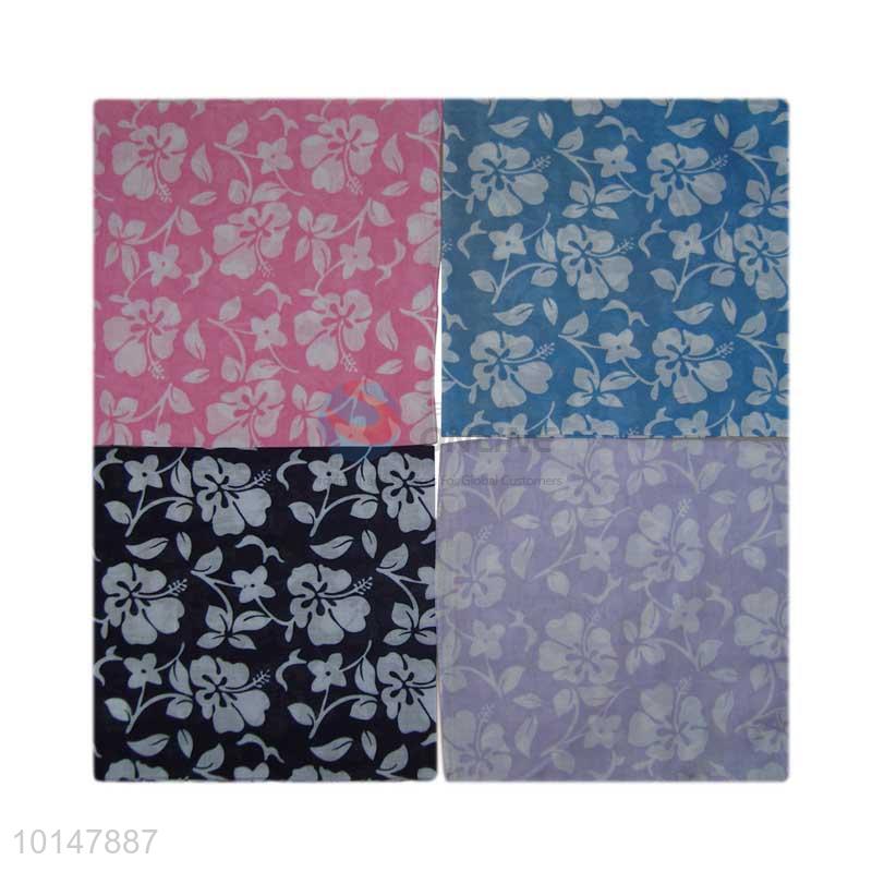 Cheap Pink/Blue/Black/Grey Cotton Handkerchief with Flower Patterns