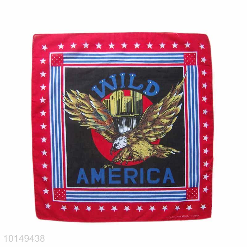Cheap Colorful Fancy Cotton Handkerchief with Wild America Design and Red Outline
