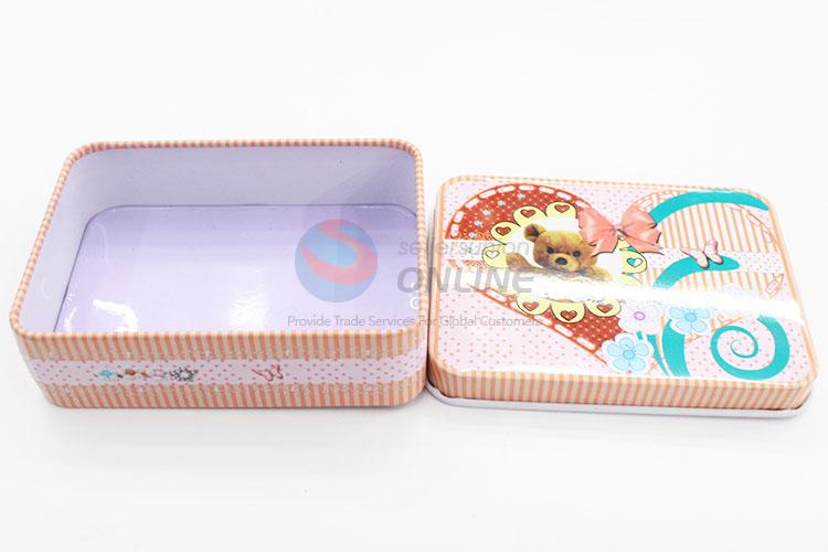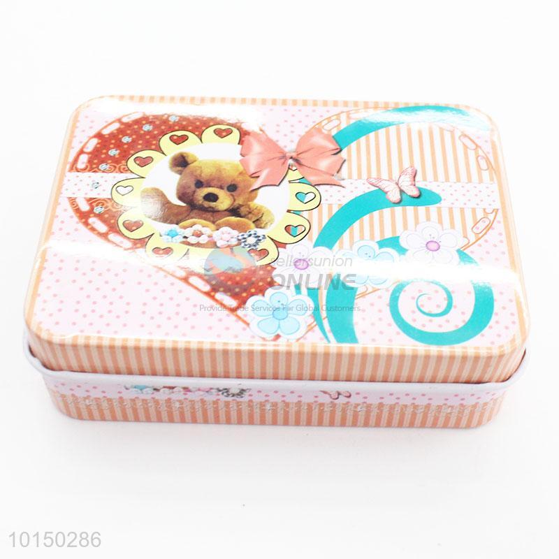 Cute Bear Pattern Rectangular Shaped Metal Tea Box Tinplate Container Home Decor Ornament Tin Box Home Decor