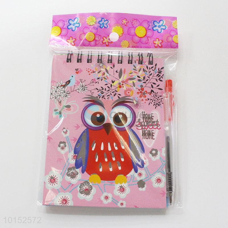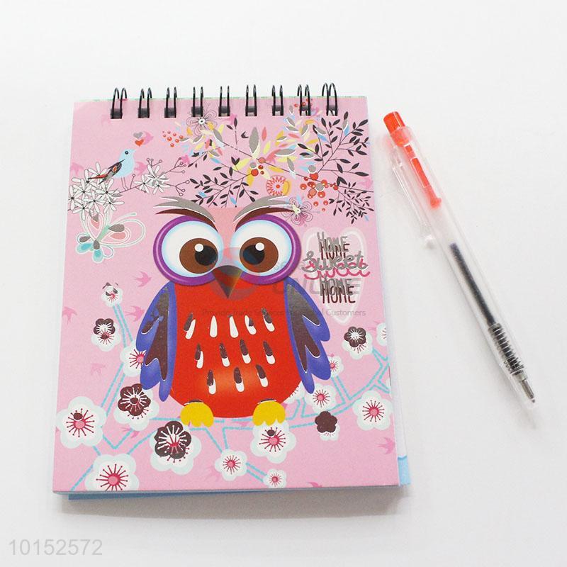 Pink Color Owl Pattern Notebook with Pen