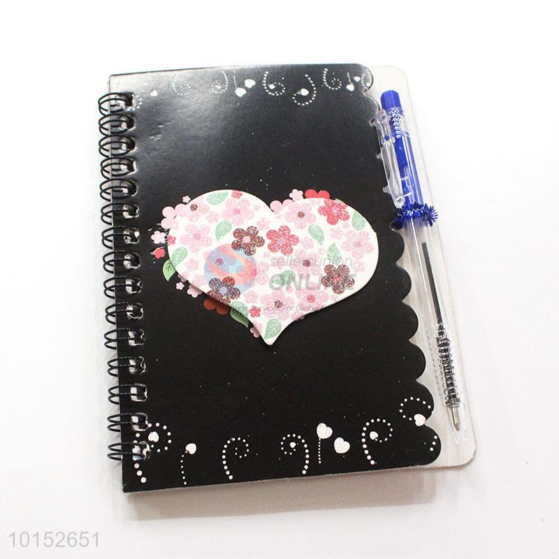 Black Spiral Notebook with Pen School Student Stationery