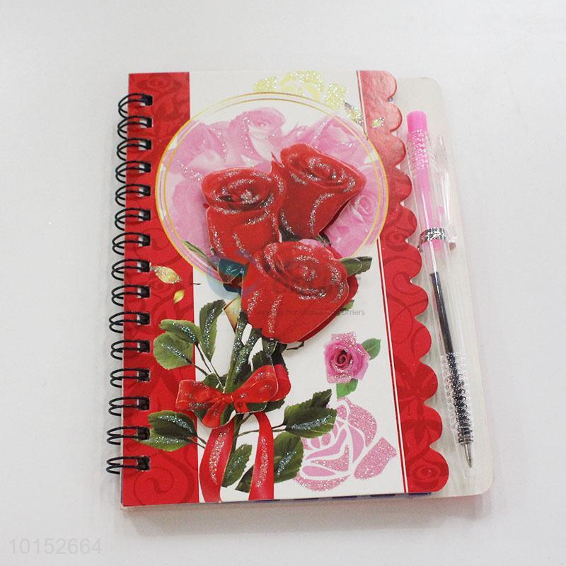 Red Rose Office Supply Notebook with Pen