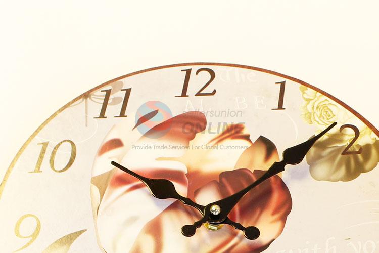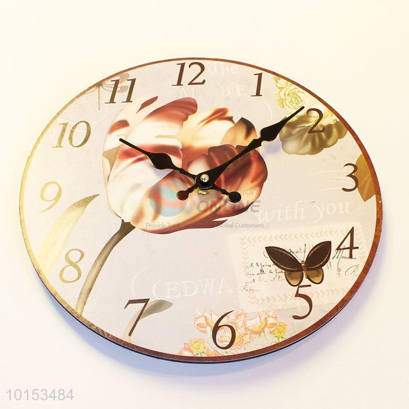 Round Shaped Flower Pattern Wall Clock Board Clock for Home Decoration