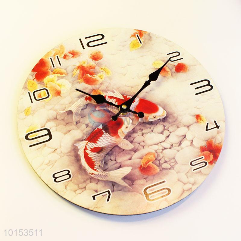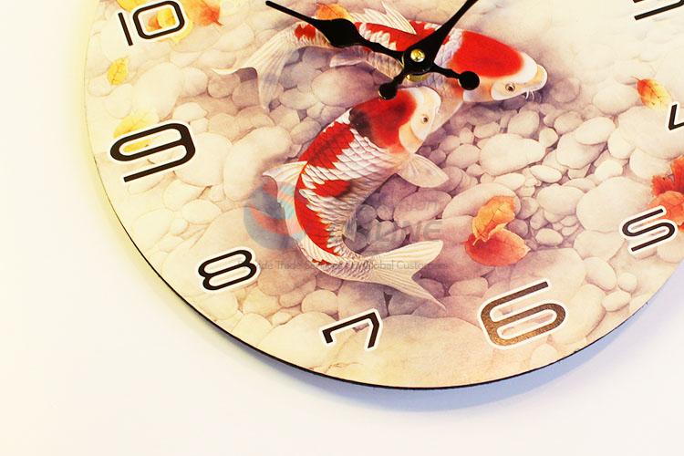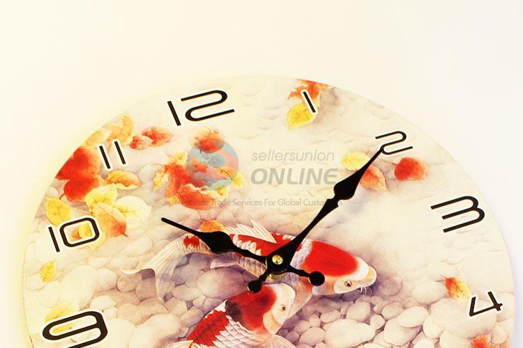 Round Shaped Fancy Carp Pattern Wall Clock Board Clock for Home Decoration
