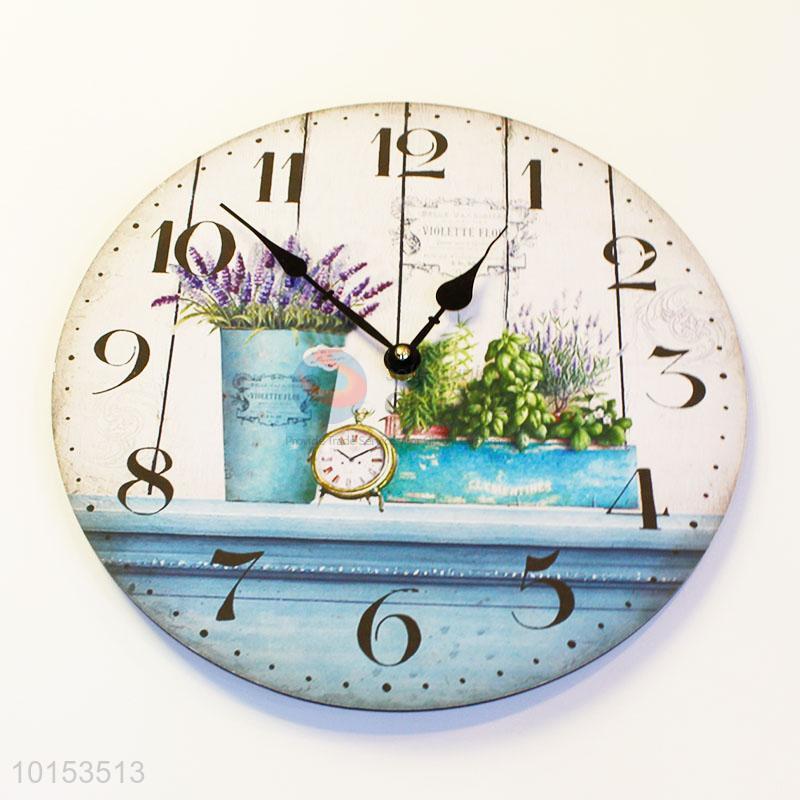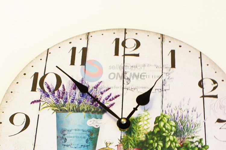 Round Shaped Lavender Pattern Wall Clock Board Clock for Living Room Decoration