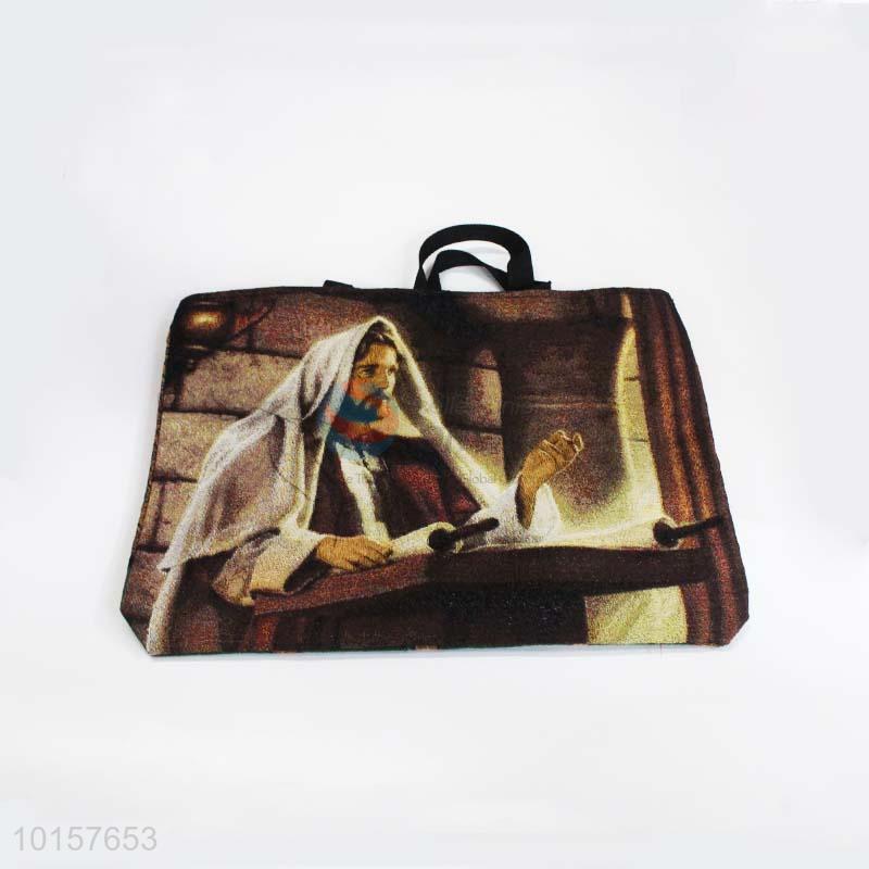 28*38cm Jesus's Speech Printed Grosgrain Hand Bag with Zipper,Black Belt
