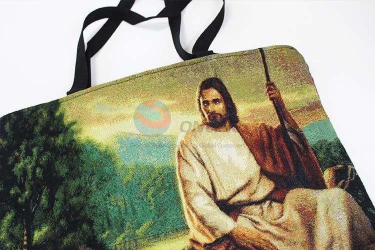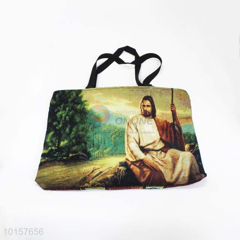 28*38cm Jesus Printed Grosgrain Hand Bag with Zipper,Black Belt