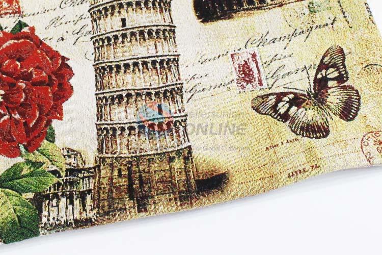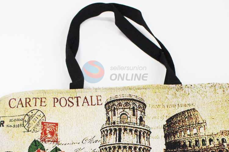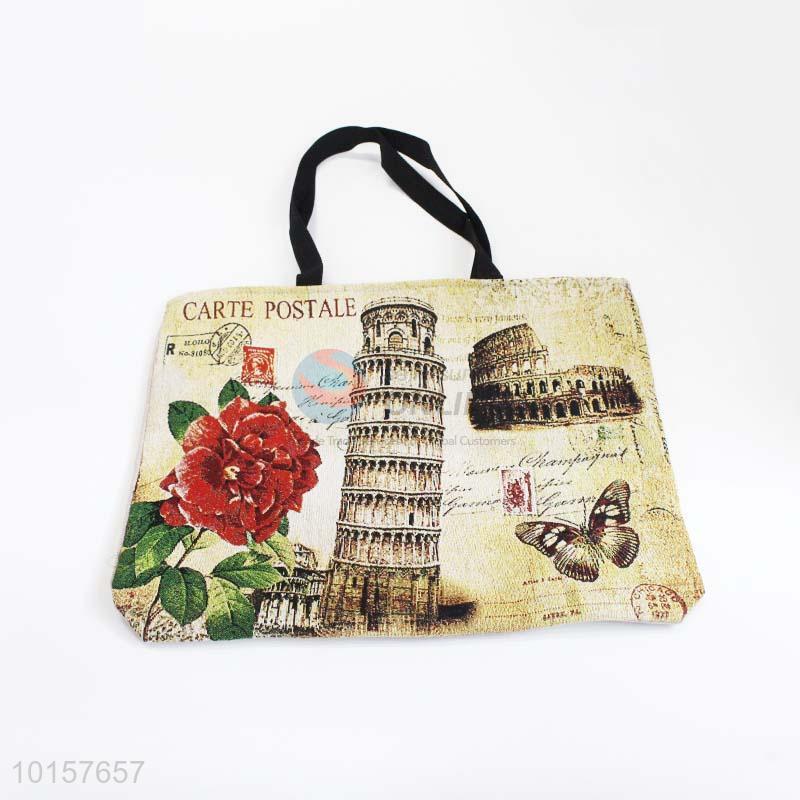 28*38cm Building and Flower Printed Grosgrain Hand Bag with Zipper,Black Belt
