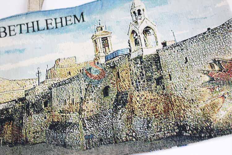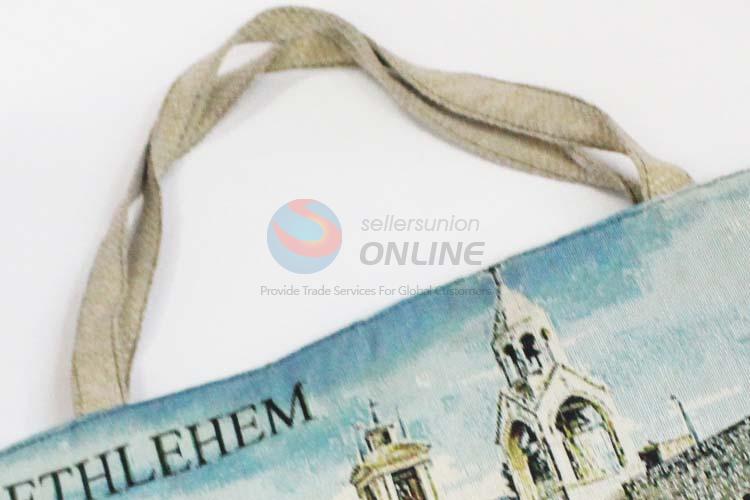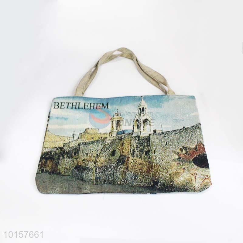 28*38cm Bethlehem Printed Grosgrain Hand Bag with Zipper,White Belt