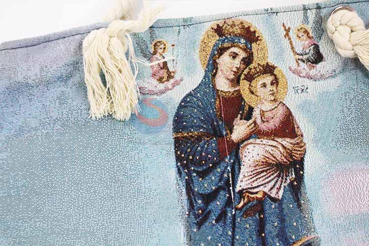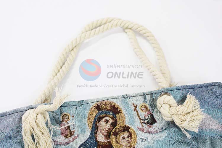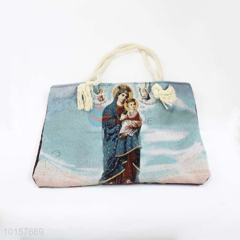 28*38cm Religious Themes Grosgrain Hand Bag with Zipper,White Twine Belt