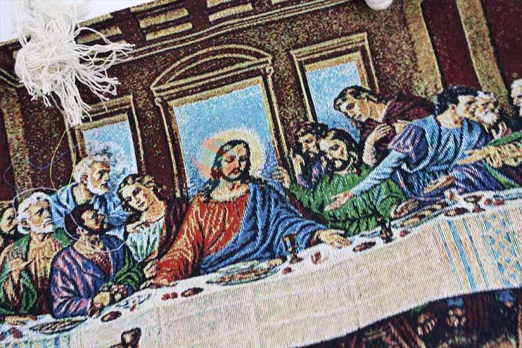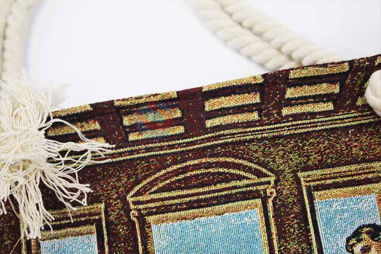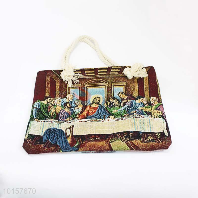 28*38cm The Last Supper Printed Grosgrain Hand Bag with Zipper,White Twine Belt