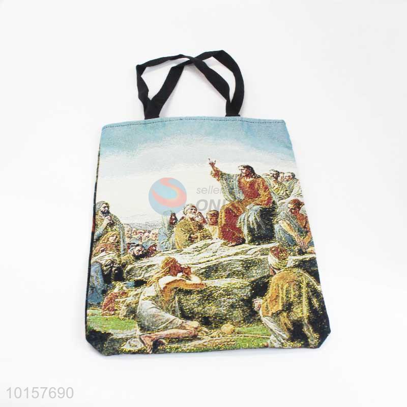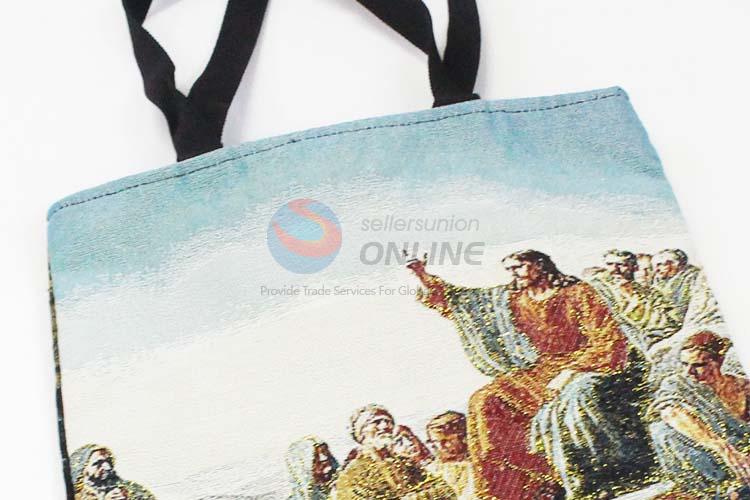 38*28cm Factory Wholesale Religious Themes Grosgrain Hand Bag with Zipper,Black Belt