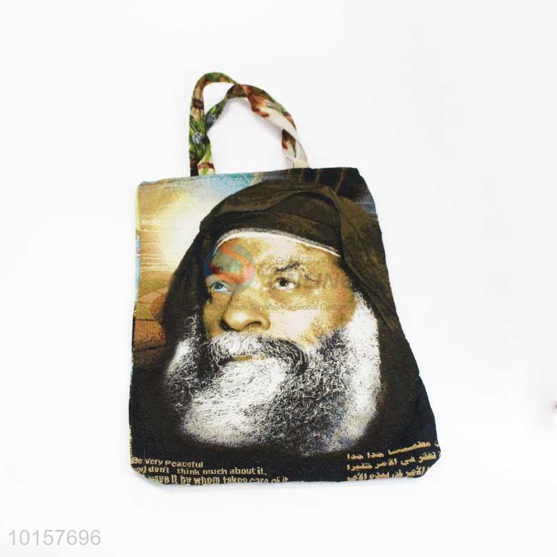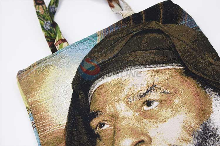 38*28cm Religious Themes A Man Printed Grosgrain Hand Bag with Zipper,Colorful Belt