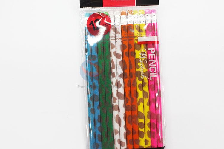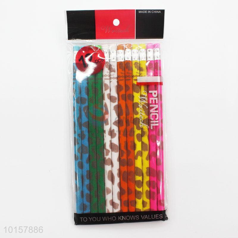 12 Pieces/Bag Colorful Pattern Pencil with Eraser for Kids Student School Office Supplies
