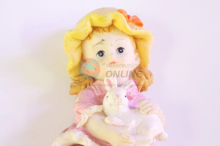 Cute Resin Girl Doll/Resin Crafts with Rabbit for Home Decoration