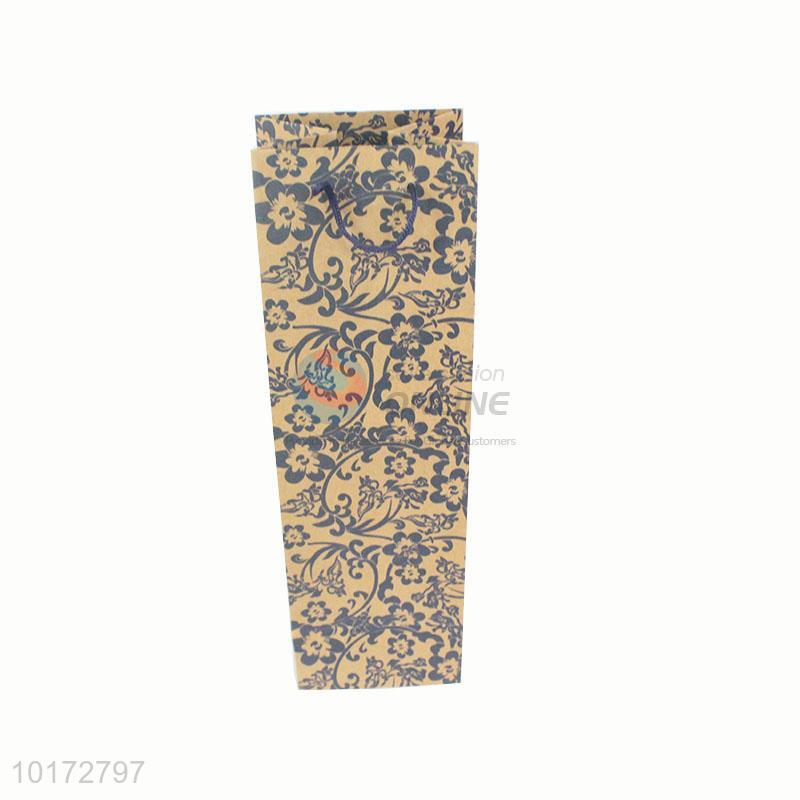 Retro flower printed kraft wine bottle paper bag