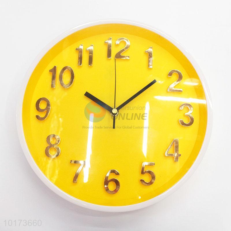 Hot Sale Decorative Round Shaped Yellow Glass&Plastic Wall Clock