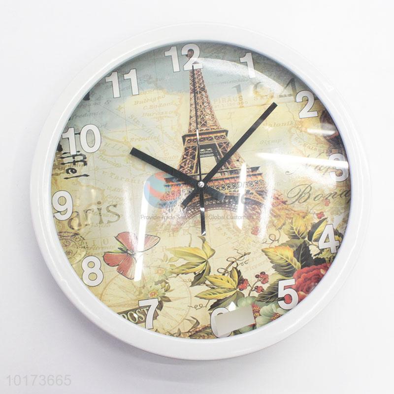 Hot Wholesale Exquisite Eiffel Tower Printed Wall Clock