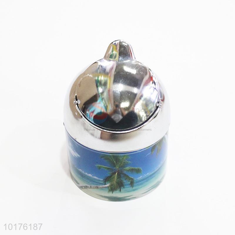 Coconut tree printed metal ashtray