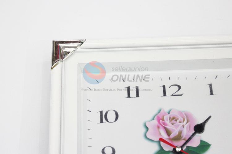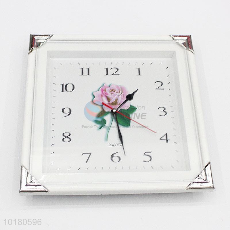 Home Decorative Rose Pattern Square Shaped Plastic Wall Clock
