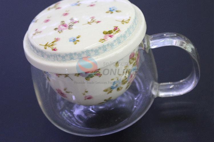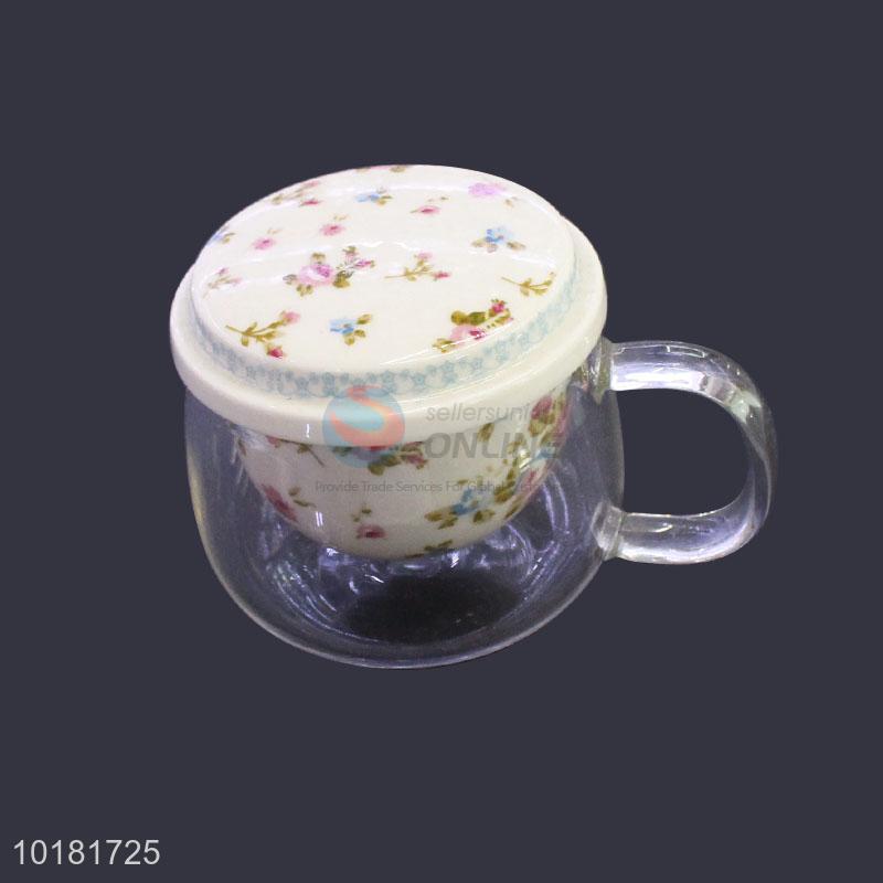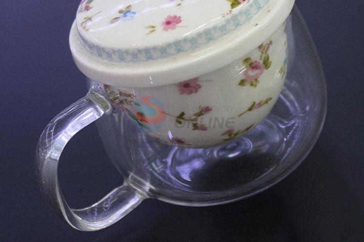 China Wholesale 3PCS Glass Tea Cup With Ceramic Tea Strainer