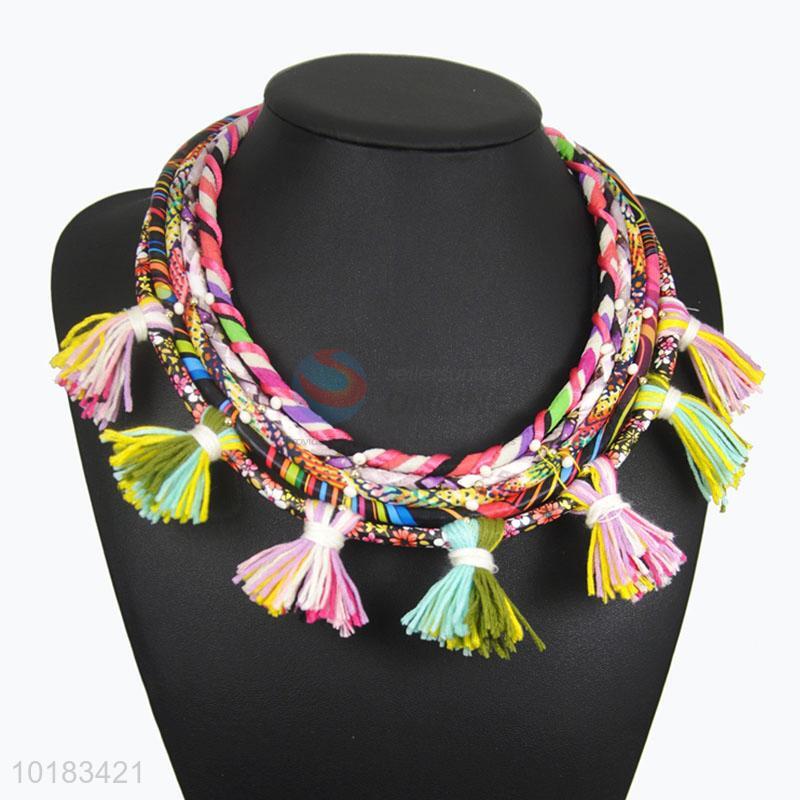 Pretty Cute Jewelry Woven Necklace with Tassels