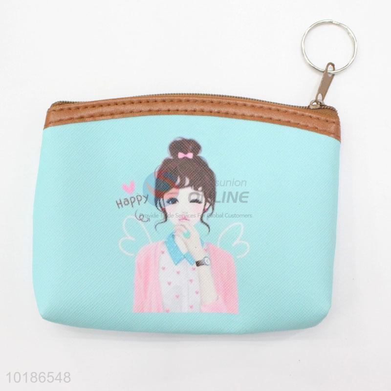 Beautiful Happy Girl Printed Coin Purse Wallet PVC with Lining Pouch Money Bag