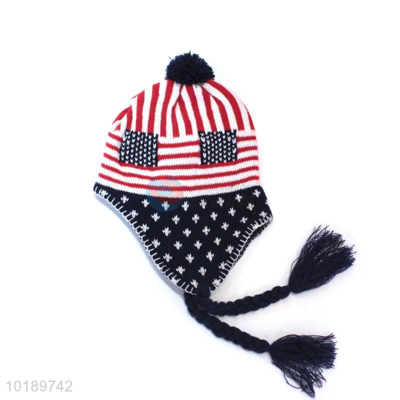 Custom Winter Plush Hat With Rope For Children