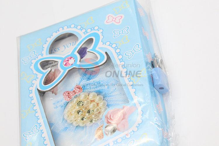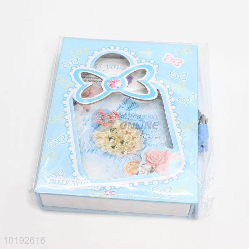 Promotional Bowknot Printed Sky Blue Dairy Notebook with Lock