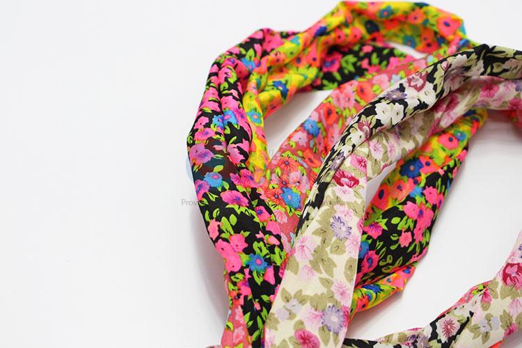 Fashion Floral Printed Fabric Covered Iron Wire Headwrap Headband